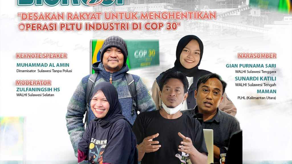 Menjelang COP30, suara rakyat harus semakin kuat untuk menuntut keadilan iklim. Di tengah janji transisi energi, PLTU industri (captive coal) justru terus beroperasi dan memperparah krisis lingkungan di berbagai wilayah, terutama di Sulawesi dan Kalimantan. Mari bergabung dalam diskusi bersama para pegiat lingkungan dari berbagai daerah untuk memperkuat desakan rakyat di panggung iklim dunia. Selasa, […]
