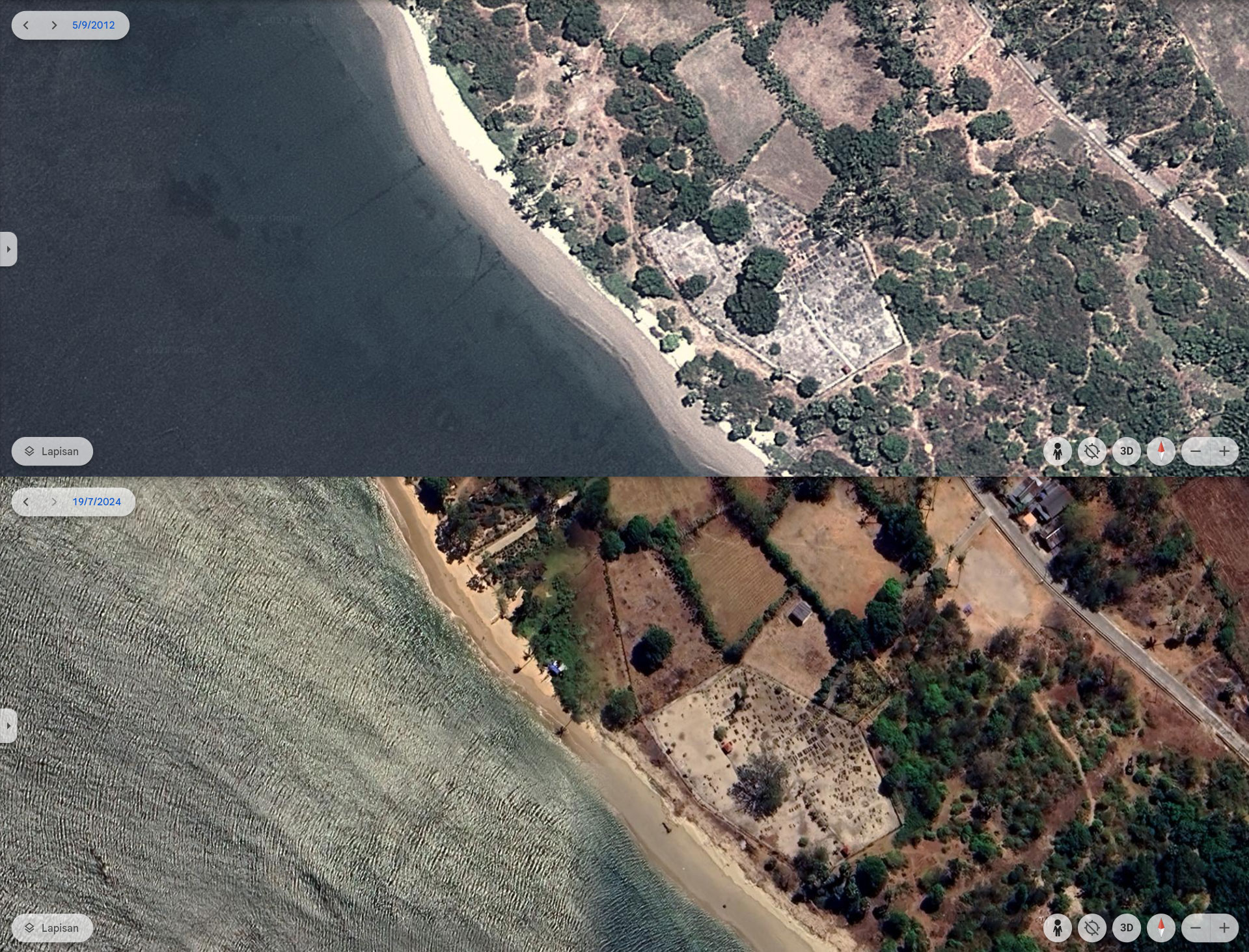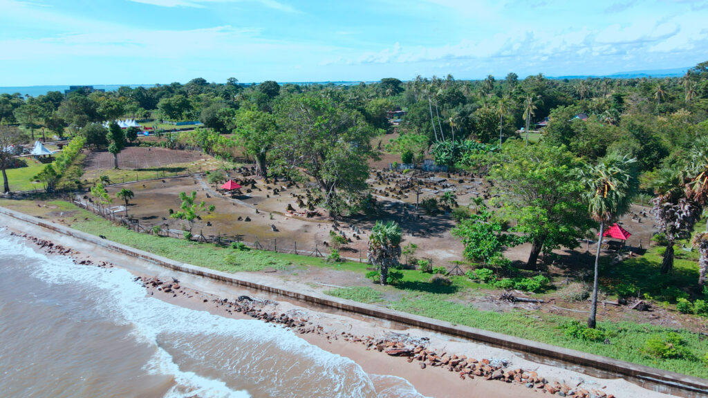 Foto utama: Garis pantai yang semakin dekat dengan kompleks makam. (Foto: Jaring Nusa)