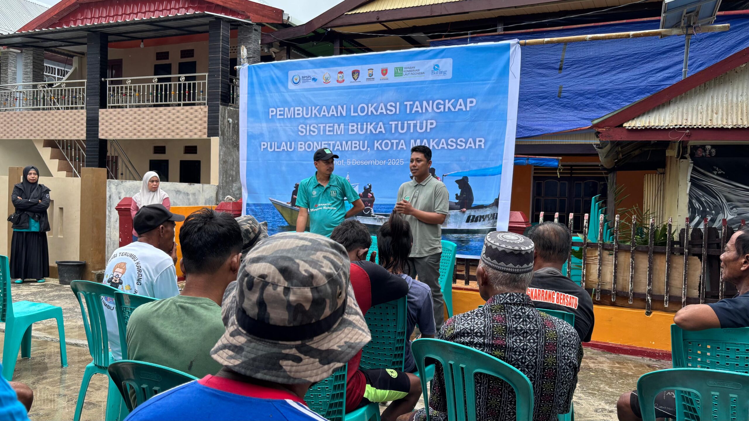 YKL Indonesia memberikan pengarahan kepada nelayan sebelum membuka area buka tutup yang diterapkan untuk pertama kali. (Foto: Riszky/Jaring Nusa)